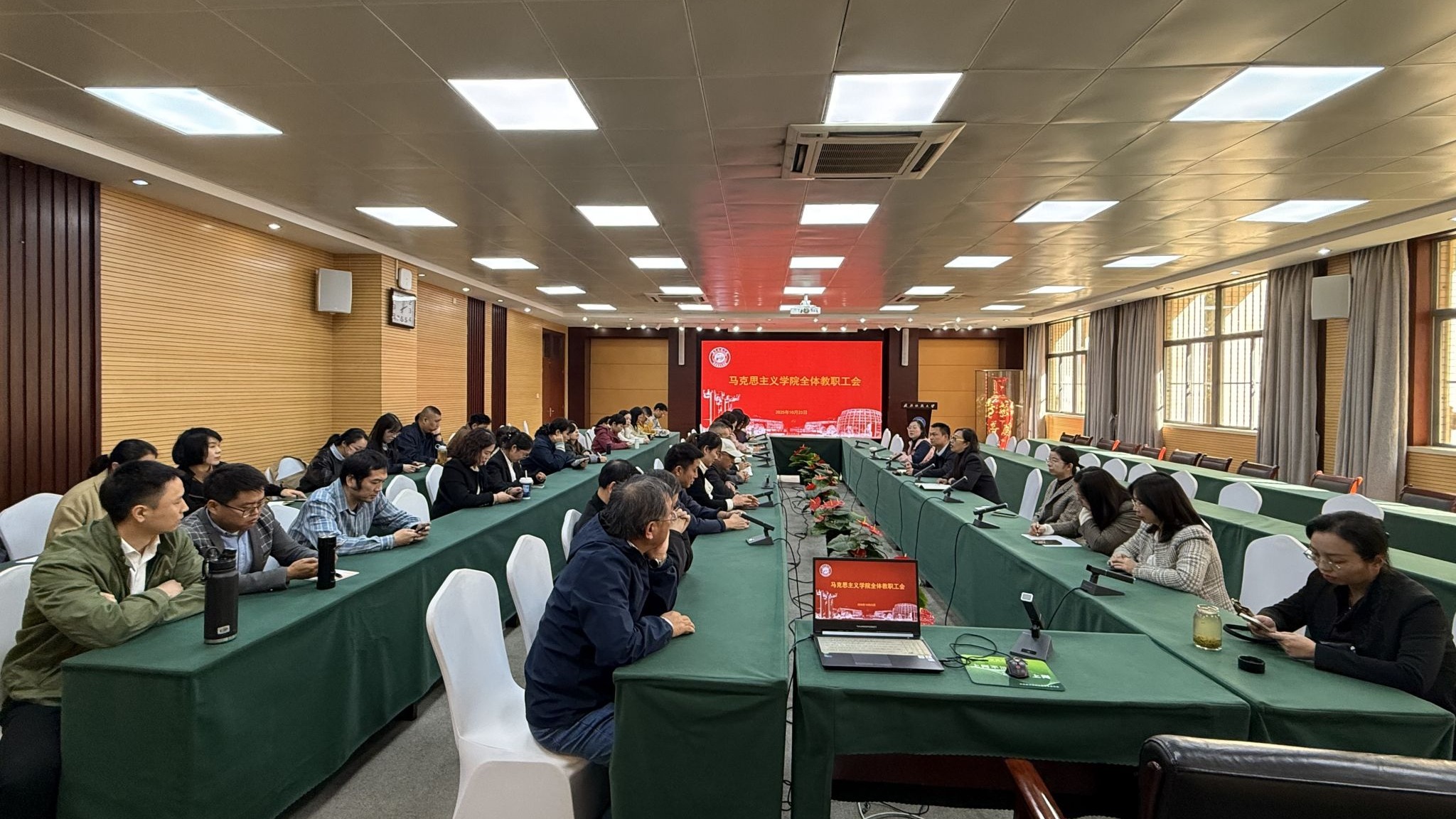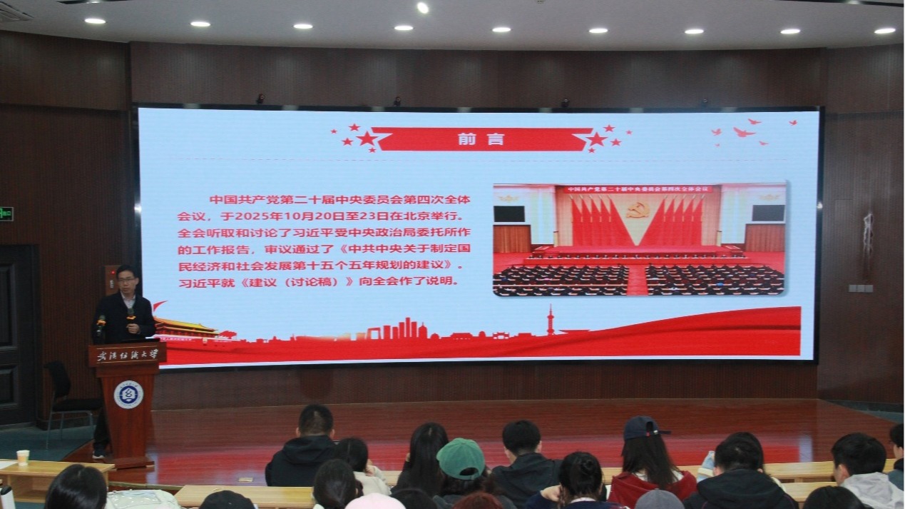 2025-10-31 查看详情为深入学习贯彻党的二十届四中全会精神,推动党的创新理论在基层落地见效,10月29日下午,学院教授、中共湖北省委宣传部“百马行动”宣讲团成员王海燕教授赴学校“理论热点面对面”实践基地-汉正街道流动党员专题培训班开展“在接续奋斗中谱写中国式现代化新篇章”学习贯彻党的二十届四中全会精神主题宣讲。汉正街道40余名流动党员参加。“面对面”宣讲,推动理论融入基层实践作为“理论热点面对面”实践基地的年度重要活动之一,本次宣讲聚焦党的二十届四中全会精神的核心要义,...