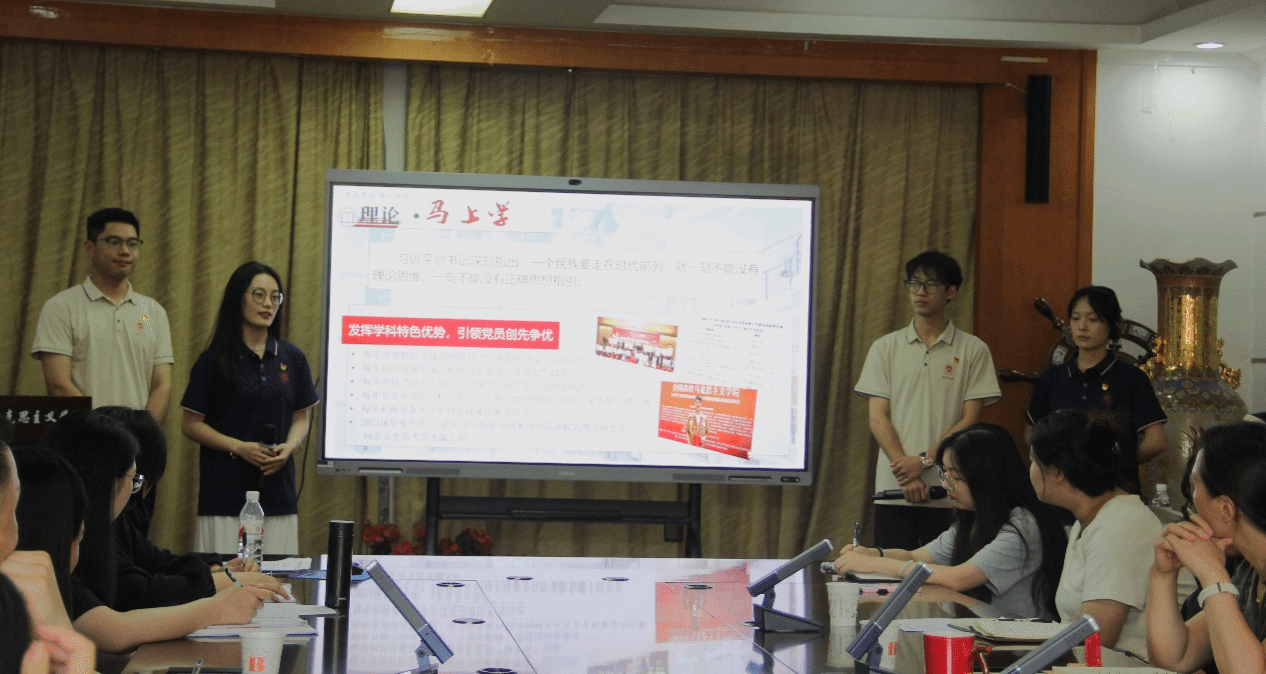 活动伊始,党员师生全体起立,齐唱国歌。随后,研究生党支部的四位成员对支部建设理念及成果进行了集中展示。金艳以“增强自信、注重自立、严格自律”为主题,为全体研究生毕业党员上主题党课。她指出以马克思主义为指导,是立党立国之本,是社会主义现代化建设的根本,也是社会主义文化建设的根本。她勉励同学们要增强专业自信、学科自信、学校自信,要牢记使命,勇担责任,以实际行动践行共产党员的初心和使命;要自立自强,具备独立思考问题和解决问题的能力,以高度的责任心和敬业精神投身于工作中;要严格自律,遵守党的纪律,加强自我约束,时刻以党的要求为准则,争做工作岗位的先锋。