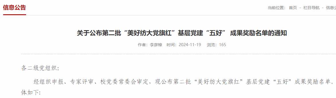 公告链接:关于公布第二批“美好纺大党旗红”基层党建“五好” 成果奖励名单的通知-太阳成集团tyc33455cc组织部(党校) https://zzb.wtu.edu.cn/nr.jsp?urltype=news.NewsContentUrl&wbtreeid=1031&wbnewsid=4182