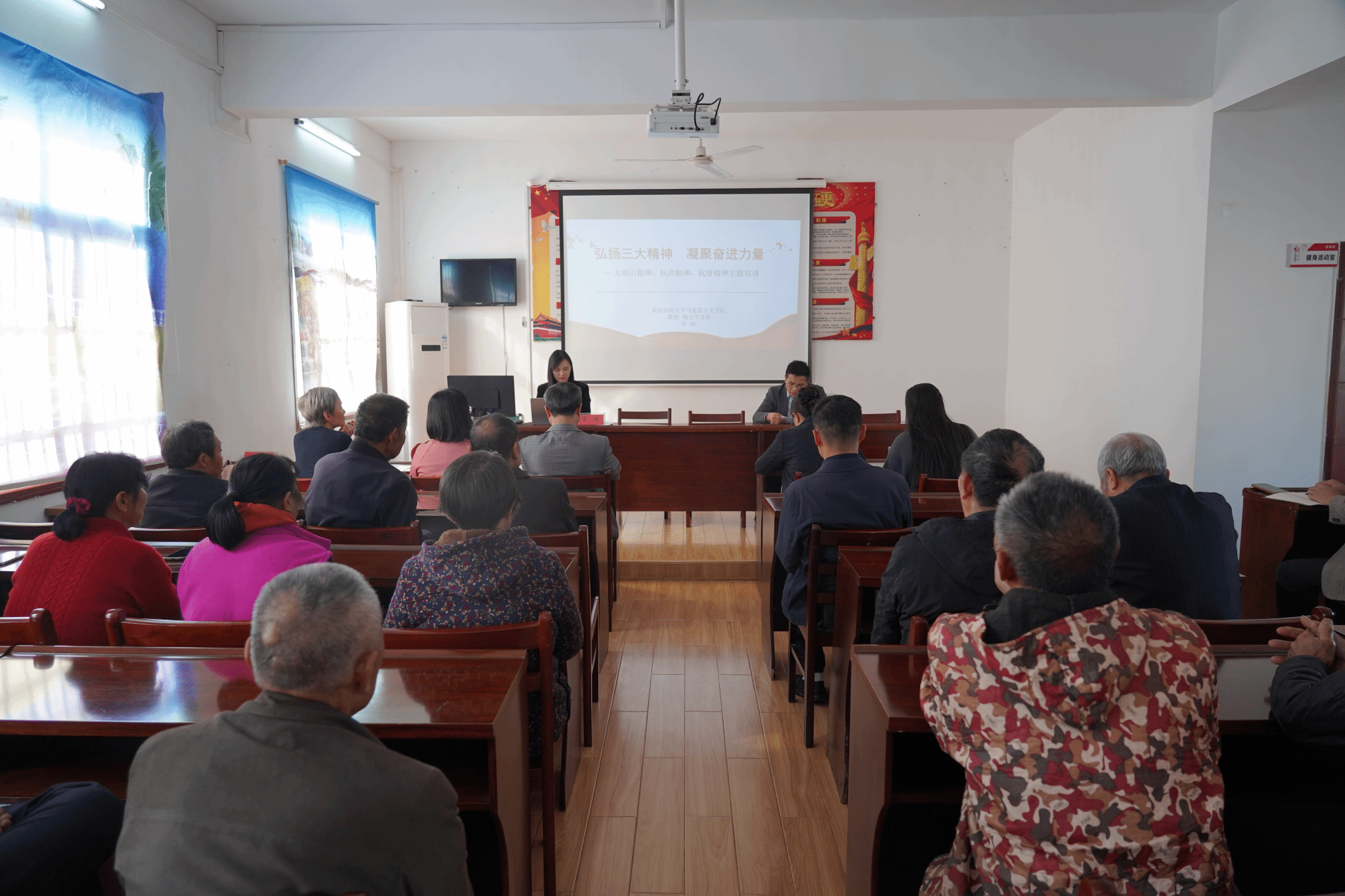 为深入推进“大思政课”建设,太阳集团tyc33455宣讲团于10月23日赴鄂州市华容区开展“大思政课”“百马行动”宣讲活动。省委讲师团副主任孔奇志、办公室副主任陈静莅临指导,学院党委书记邹茜率队,常沛、王海燕、商卫星、喻学林、李静、刘香菊、杨晶晶、徐莺等8位教师及学院研究生“初心”实践团学员,分赴华容镇凉亭村、庙岭镇大廖社区、临江乡黄柏山村、蒲团乡郭垱村、段店镇孔关村、永福社区,以及区卫健局、区水利和湖泊局等地开展宣讲。
