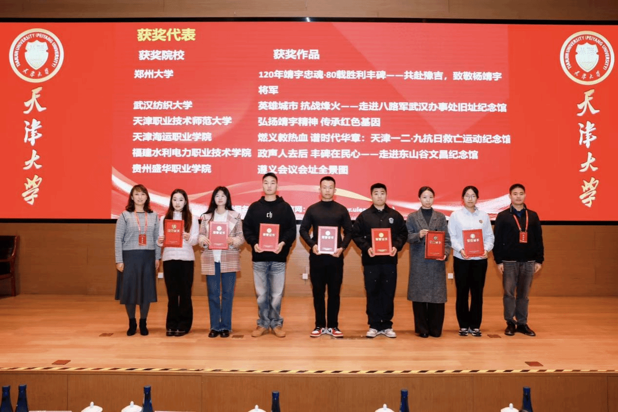 11月8日,第四届全国大学生红色全景资源创意展示交流会在天津大学隆重举行。学校马院研究生作品《英雄城市 抗战烽火--走进八路军武汉办事处旧址纪念馆》荣获大赛一等奖。