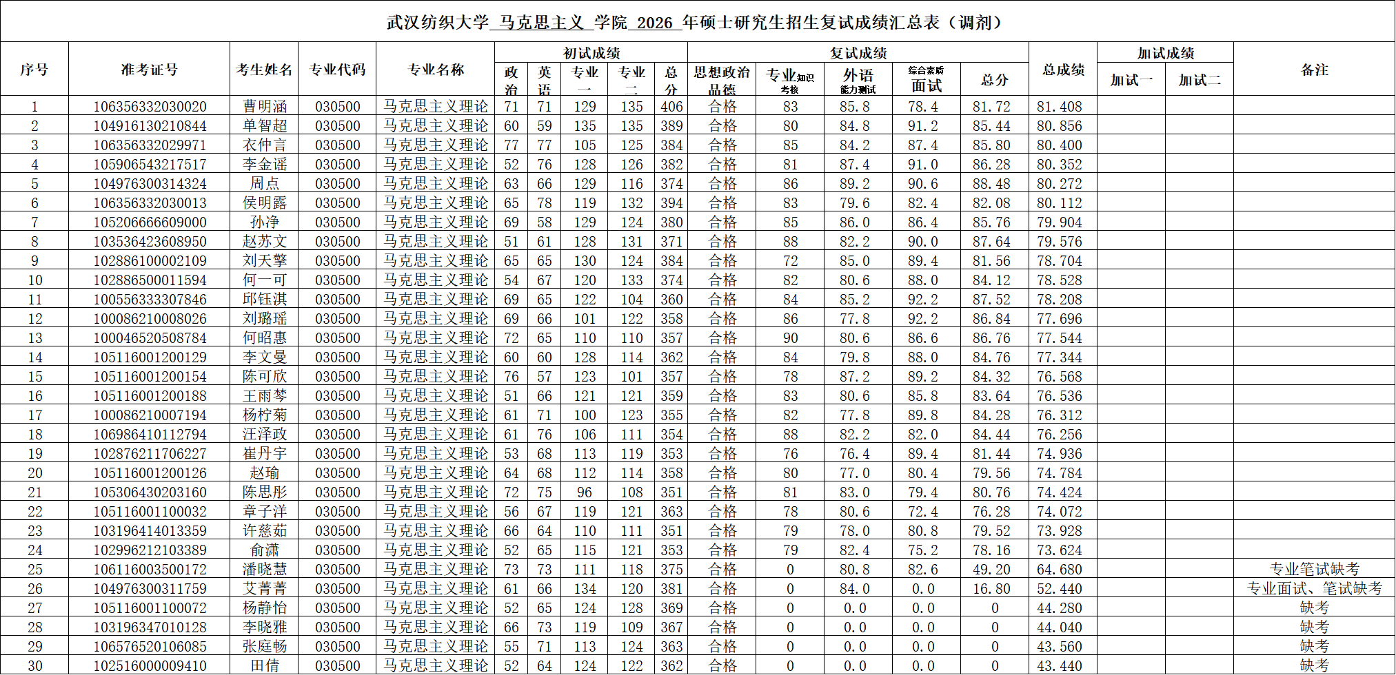 太阳集团tyc33455 2026 年硕士研究生招生复试成绩公示(调剂)