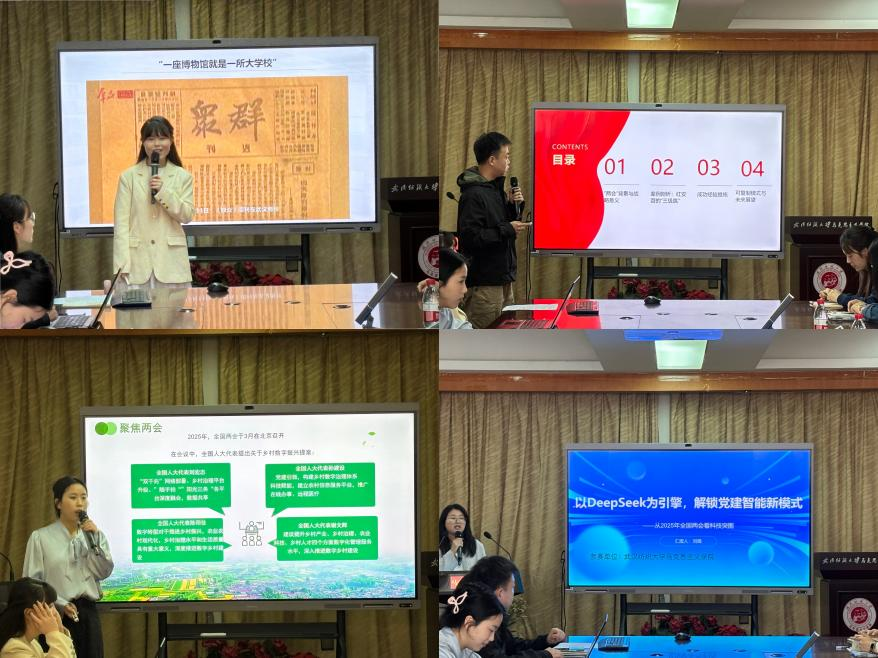 比赛现场,本院参赛选手按照抽签顺序依次上台。他们运用所学专业知识,紧密围绕“两会”中的典型问题展开讲演,涵盖博物馆建设、农业科技发展、科技创新、探月精神等多个选题。选手们借助ppt讲演、视频配乐等多种形式,紧扣两会热词,挖掘鲜活素材,精准把控节奏,赢得现场阵阵掌声。