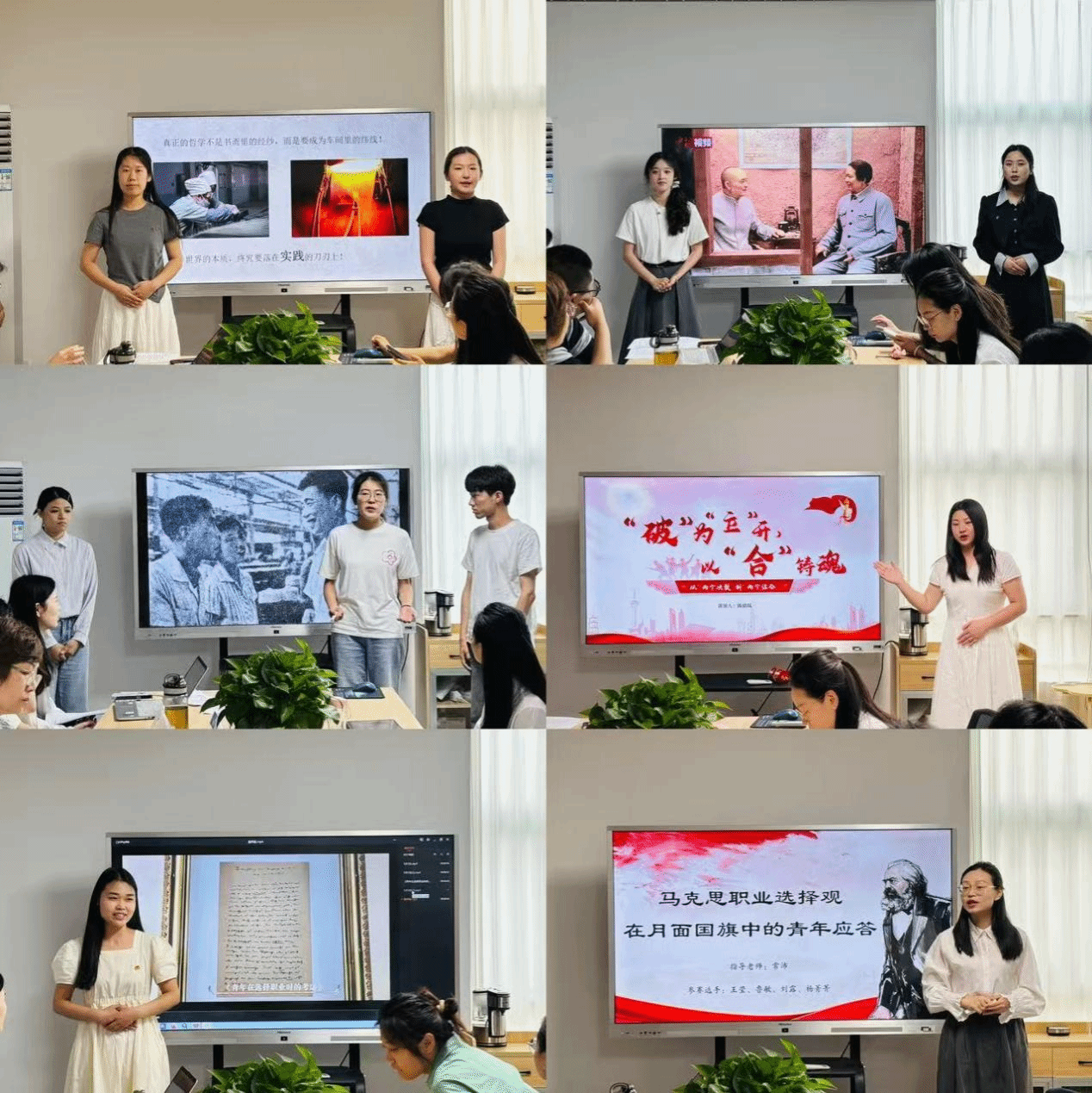 点评环节中,评委们从学理性、表现力等维度给予专业指导。方芳老师充分肯定同学们的选题视角,并针对每组作品提出优化建议,鼓励选手进一步挖掘文献中的现实意义;许桂林老师强调讲演需注重学理支撑,在理论深度上狠下功夫;李少多老师则指出,比赛不仅要 “讲得深、讲得活”,更要通过肢体语言与情感表达增强感染力,让经典理论 “活起来”。