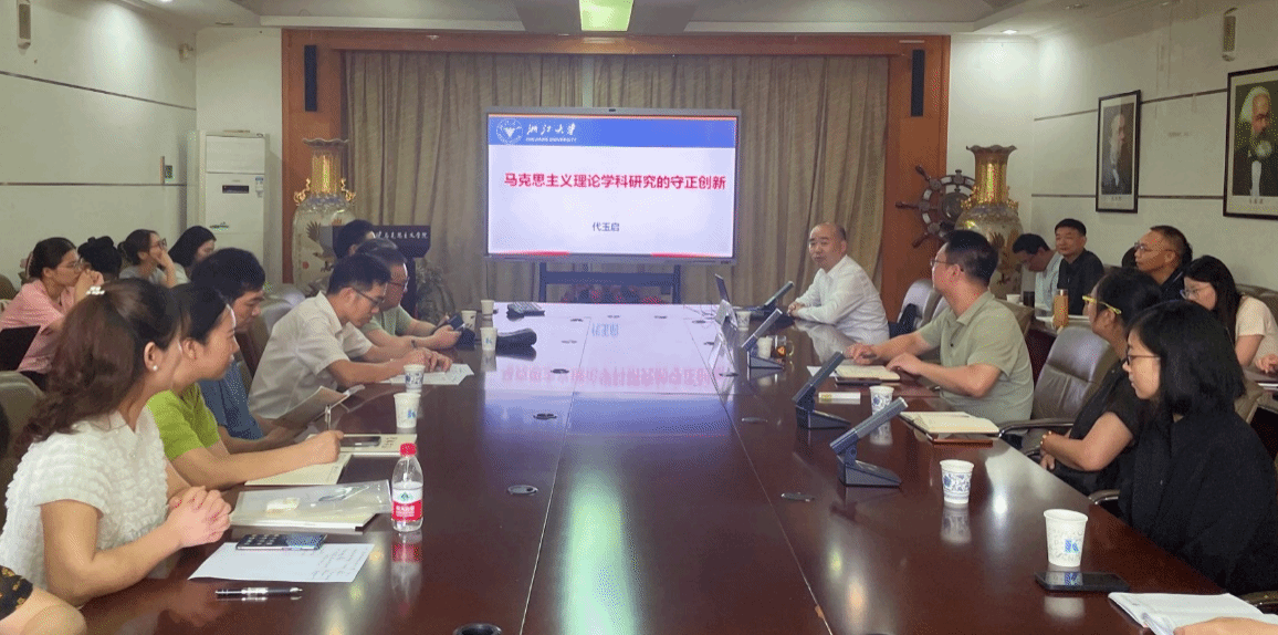 代玉启从学科建设动向、学科热点扫描、学科研究方法和学人成长理路等四个方面进行学术交流。他以“马克思主义理论学科研究什么”为切入点,系统详实地讲解了马克思主义理论各二级学科的主要研究范围。他指出,马克思主义理论学科建设应以一级学科为平台,二级学科为要,三级方向为核,注重学科之间的关联,并依托相关学科,共同促进马克思主义理论学科的新发展。他提倡从经典文献、最新政策、实践观察等方面着手关注学科热点,思考如何专业地学习和阐释最新精神,实现知识点的全方位延伸。他还详细介绍了学科研究方法,提出学科研究的优化方法和更新维度的方法。他鼓励广大师生要坚持守正创新、育人育己,学院要加强组织化科研。