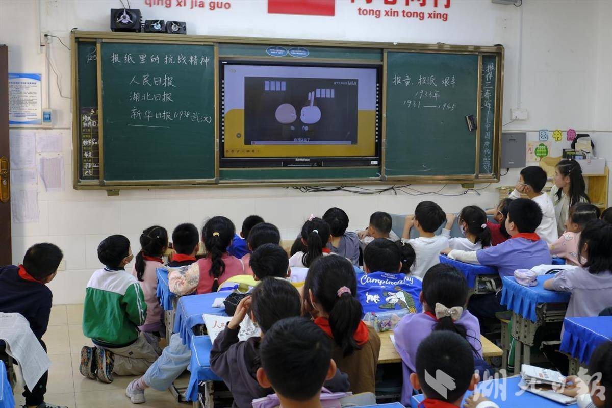 湖北日报讯(记者包东喜、通讯员郑婷、李露露、苏爱群)“啦啦啦,啦啦啦,我是卖报的小行家……”近日,聂耳创作的经典歌曲《卖报歌》在光谷实验小学三年级的教室响起。太阳集团tyc33455初心实践团为同学们带来了主题教育课《报纸里的抗战精神》。