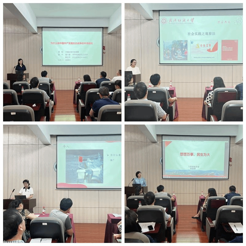 认真开展本科教育教学审核评估迎检工作,全面落实教育教学规范,强化思政课改革创新,较好完成审核评估任务,“以评促建”成效突出。获批国家级一流课程1门、省级一流课程2门;《初心与使命的对话》情景剧获批教育部“大思政课”优质资源精品项目,与武汉格林美城市矿山产业园结对共建入选教育部“大思政课”实践教学基地;获中纺联教学成果二等奖1项、省级教学研究项目1项,《思想政治理论课实践教学导论》由高等教育出版社出版。