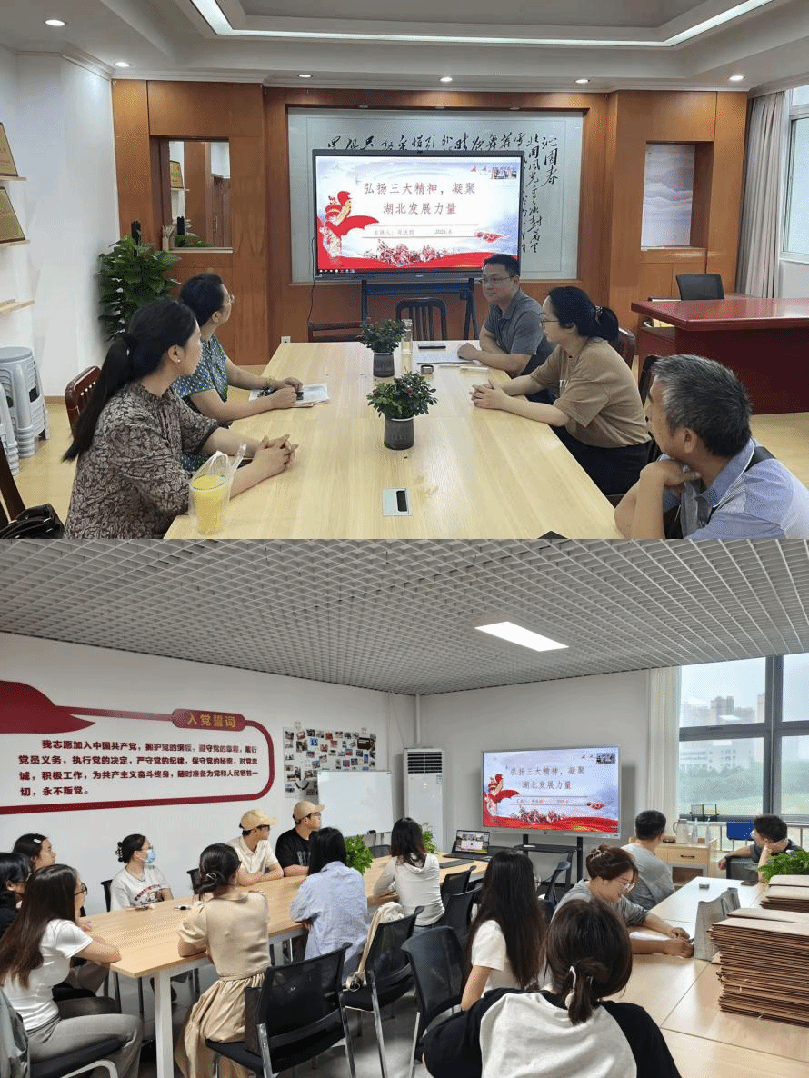 6月19日上午,“初心”研究生师生党支部在南湖校区220活动室、阳光校区太阳集团tyc33455一站式学生社区召开了6月份主题党日暨党课活动。支部书记肖述剑为全体党员讲授《弘扬“三大精神”,凝聚湖北发展力量》主题党课。