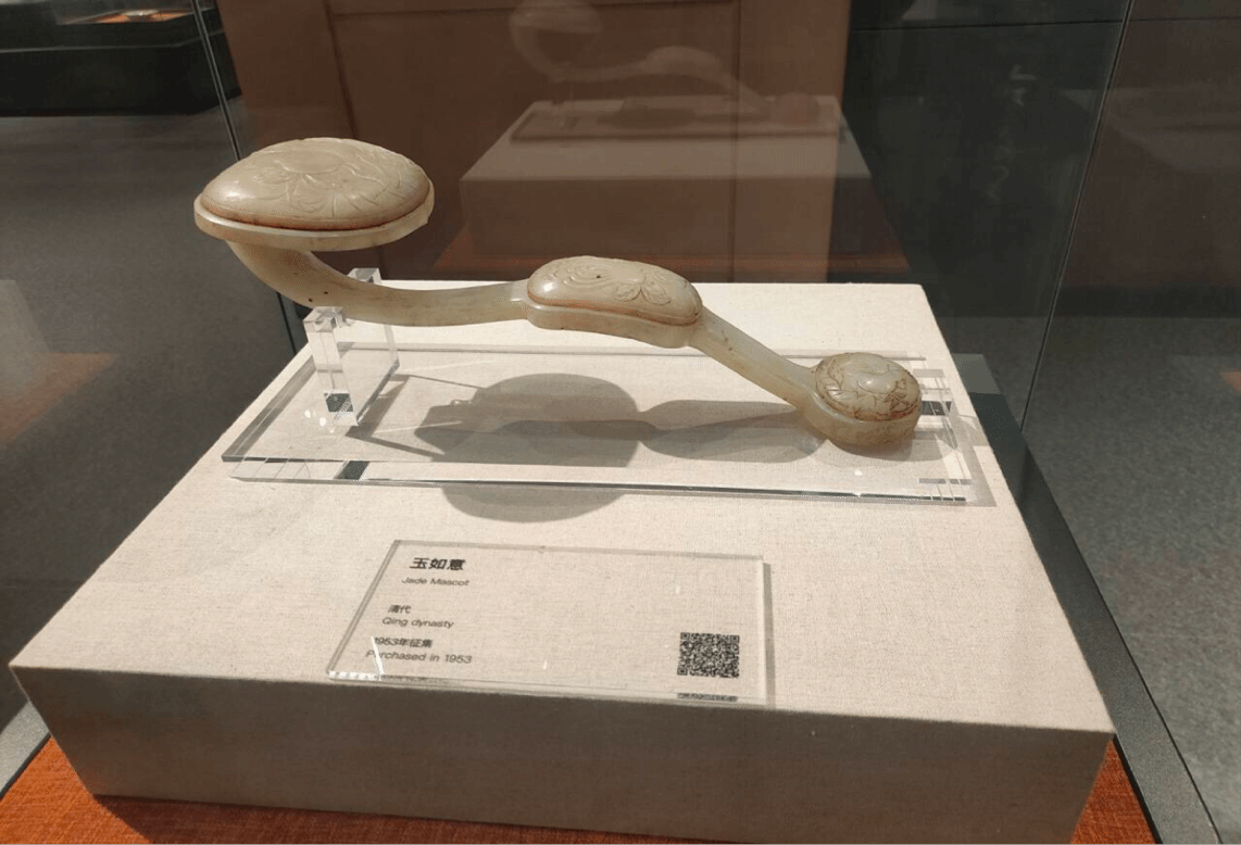 在活动中,讲解员以深入浅出的方式,向同学们讲述了青铜器的辉煌历史。使大家了解到青铜器在古代的重要地位,它不仅是实用器具,更是一种文化象征,代表着当时的工艺水平和社会地位。随后,讲解员又引领大家走进玉如意的世界。玉如意作为传统的工艺品,具有丰富的文化内涵和艺术价值。讲解员让同学们猜猜玉如意的作用是什么。范美志同学回答“用作枕头吗?”最后讲解员给出正确答案是玉如意在最初发明是用来挠痒。听完这个答案,大家纷纷表示诧异,了解到玉如意的演变历程以及它在不同历史时期的意义。