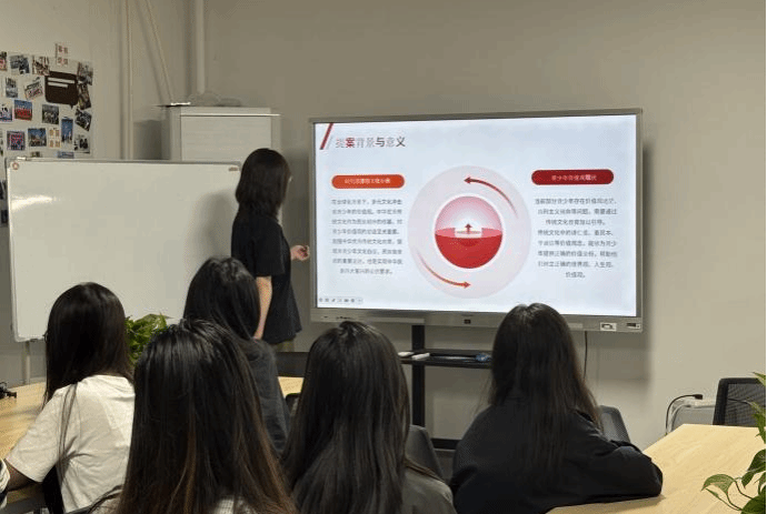 团课在激昂的团歌中拉开序幕。本次团课重点围绕“加强中华优秀传统文化教育,涵养青少年价值观”这一主题,从提案精神内涵和实施策略分析两个维度展开探讨。孙毅先同学首先阐释了提案的背景与核心内容,随后就该提案的实施建议进行了详细解读:首先以中华优秀传统文化的结晶——经典文本为载体,引导青少年爱读书、读好书、善读书,在阅读中感悟先贤智慧;其次,充分发挥学校教育主阵地的作用,推动中华优秀传统文化深度融入学校教材与课堂;最后,依托博物馆、文化遗址等公共资源,结合传统节日活动,实现优秀传统文化的创造性转化、创新性发展。