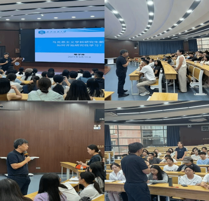 9月11日下午,喻学林围绕“马克思主义学科研究生新生如何开始研究性学习”主题,分别就“为什么读硕士研究生”“学习目标是什么”“专业学习什么”“研究生的学习方式与本科有何不同”与新生们交流。喻学林鼓励同学们要积极培养研究性、积累性的学习能力,学会做“减法”,圆满完成研究生阶段的任务。