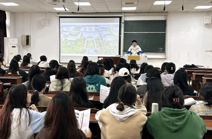 接着,我院青年教师陈帅展开宣讲。他首先介绍了太阳成集团tyc33455cc的发展历程、学科建设、专业优势和纺大文化等方面,随后从学院的学术成果、师资力量、学科水平、学术活动、招生政策等多个方面进行了细致讲解。